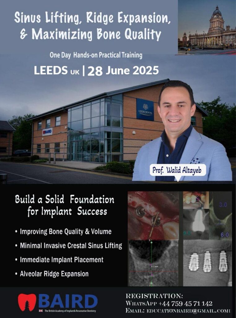 Cadaver specimens will be provided by the course for hands-on clinical training under direct supervision, allowing for bone grafting excursuses for each participant during the course in Coventry.